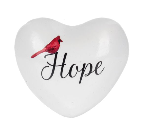 Welcome this charming cardinal chime heart into your home. Crafted from durable iron, this delicate piece features a cardinal design paired with a gentle text chime that creates a soothing sound. Perfect for displaying on a shelf, hanging in a window, or gifting to someone special, it brings warmth and natural beauty to any space. At just 1 3/4" wide, it's an ideal size for creating a meaningful focal point without overwhelming your décor. A thoughtful reminder of nature's grace and the comfort of cherished moments.