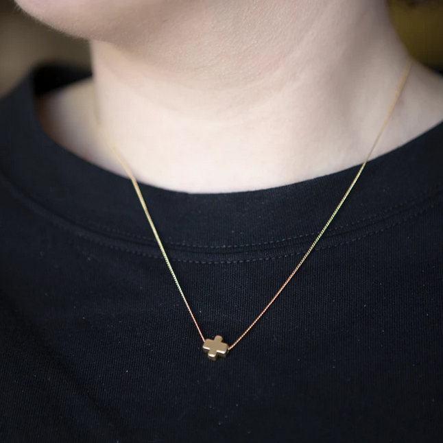 Choose faith over fear. This collection is designed to serve as a little reminder to trust our instincts, follow our hearts, and always believe in the power of faith and hope. The dainty gold-plated necklace is adjustable and features a tiny matte gold-plated cross. It is presented on a thoughtful story card, perfect for gifting.