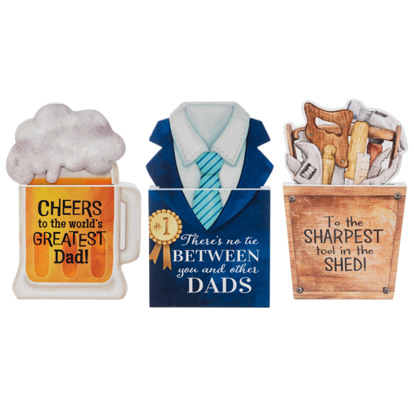This charming two-piece wooden sign is the perfect way to present a gift card to the special dad in your life. Measuring 3" L. x 4¾" H., it features a hidden message design that adds an element of surprise and delight. The set includes an insert slot labeled "Insert Gift Card Here," making it ideal for concealing cash, gift cards, or heartfelt notes. Display it on a desk, shelf, or nightstand as a thoughtful keepsake that celebrates fatherhood while serving a practical purpose. A meaningful gift that combines sentiment with function.
